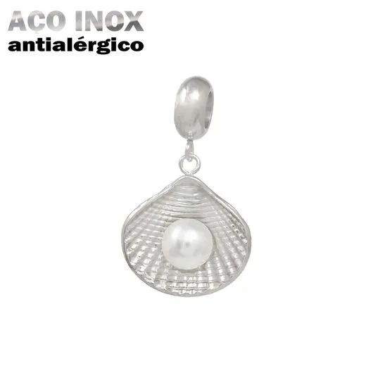 Berloque Concha com Pérola em Aço Inox